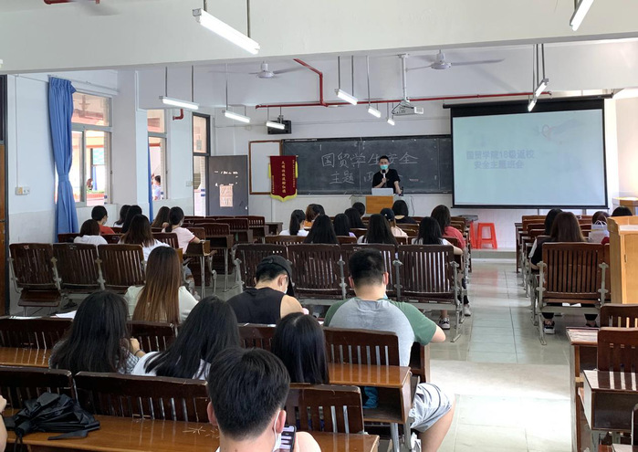 2020年7月6日在西一各班教室召開“18級返校安全主與安全離校班會”、“18級防詐騙主題班會”與“18級校外實習見面會”。本次會議由國貿學院學管主任劉偉鑫老師、18級輔導員陳權豐老師、18級各班校外指導老師主講,18級全體學生出席。
