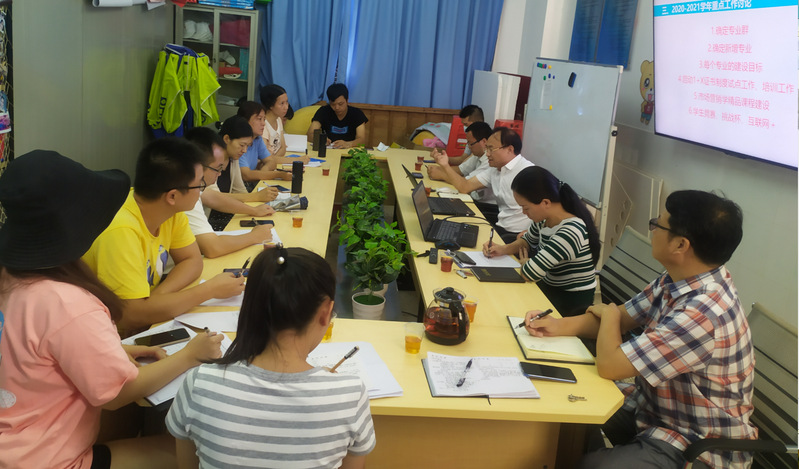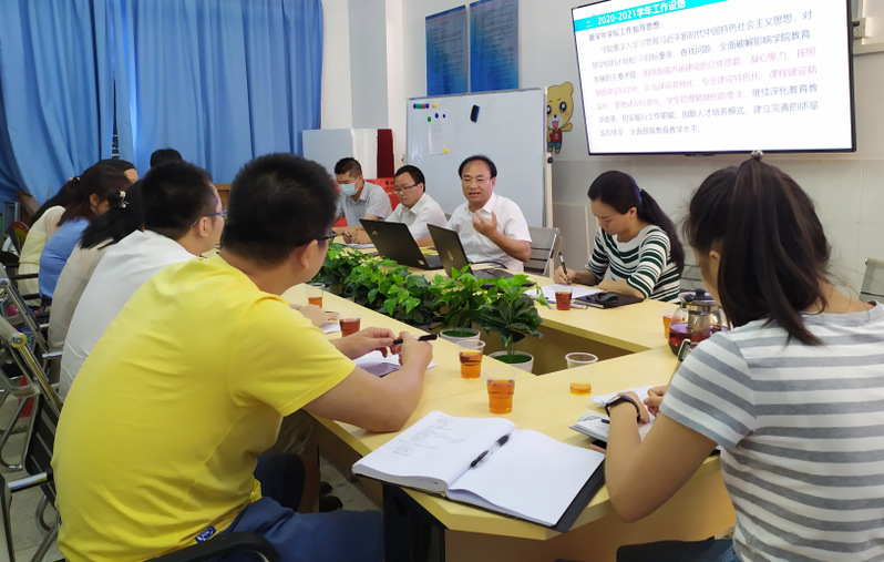 參會(huì)的老師一起討論學(xué)院2020-2021學(xué)年工作要點(diǎn)。新學(xué)年管理學(xué)院工作的指導(dǎo)思想是:深入學(xué)習(xí)貫徹習(xí)近平新時(shí)代中國(guó)特色社會(huì)主義思想,對(duì)照學(xué)校的計(jì)劃和531目標(biāo)要求,查找問(wèn)題,全面破解影響學(xué)院教育發(fā)展的主要矛盾,圍繞加強(qiáng)內(nèi)涵建設(shè)的總體思路,凝心聚力,按照制度建設(shè)科學(xué)化、隊(duì)伍建設(shè)雙師化、專業(yè)建設(shè)特色化、課程建設(shè)精品化、基地建設(shè)標(biāo)準(zhǔn)化、學(xué)生管理精細(xì)化的要求,繼續(xù)深化教育教學(xué)改革,切實(shí)履行工作職能,創(chuàng)新人才培養(yǎng)模式,建立完善的質(zhì)量監(jiān)控體系,全面提高教育教學(xué)水平。
