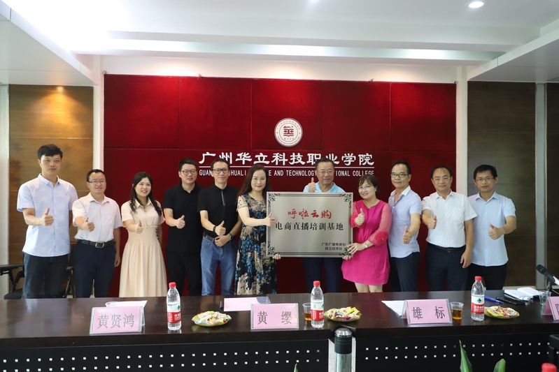 8月19日上午,廣州華立科技職業(yè)學(xué)院與廣東廣播電視臺珠江經(jīng)濟(jì)臺在行政樓305會議室舉行《呼啦云購》直播電商培訓(xùn)基地授牌儀式。學(xué)校黨委書記林偉健、副校長馬俊、辦公室副主任李鵬、培訓(xùn)學(xué)院副院長陶必芝等出席儀式。管理學(xué)院溫偉勝院長帶領(lǐng)校內(nèi)教學(xué)主任康信恩老師、電商系主任黃英老師參加了此次此次授牌儀式。會議特別邀請了珠江經(jīng)濟(jì)臺節(jié)目中心主管黃纓、《呼啦云購》負(fù)責(zé)人黃賢鴻、陳子龍。珠江經(jīng)濟(jì)臺主持人雄標(biāo)現(xiàn)場主持授牌儀式。