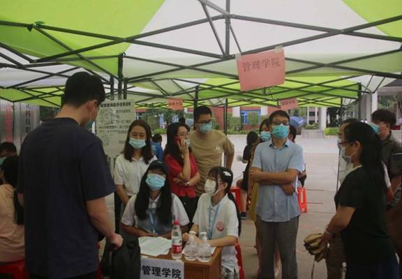 經(jīng)過了八個(gè)多月,同學(xué)們終于迎來了期盼已久的開學(xué),沉寂許久的校園再次重啟。管理學(xué)院迎來了19級(jí)各專業(yè)的同學(xué)們返校,根據(jù)學(xué)校的工作安排,遵循“分批錯(cuò)時(shí)”的原則,在校門口設(shè)立學(xué)生體溫測(cè)量、穗康碼的檢測(cè)點(diǎn)。