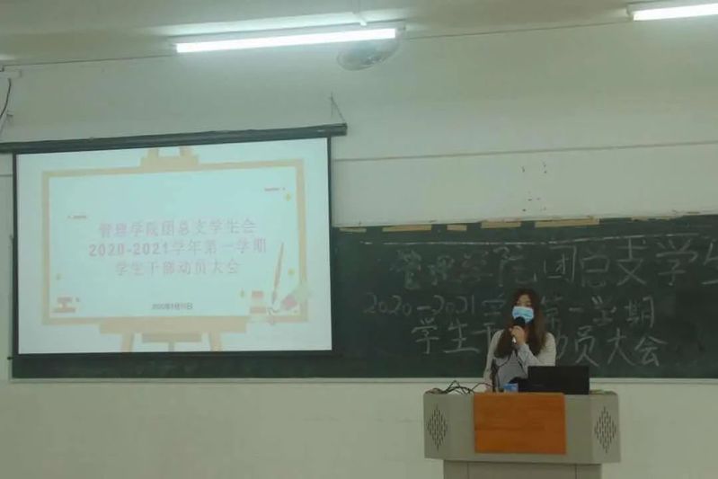 隨后管理學(xué)院團(tuán)總支陳媛書記講述了有關(guān)團(tuán)學(xué)工作的注意事項(xiàng),并強(qiáng)調(diào)了在團(tuán)學(xué)工作中學(xué)生與老師之間溝通的重要性,希望在新的學(xué)期里大家能團(tuán)結(jié)一致、相互配合。