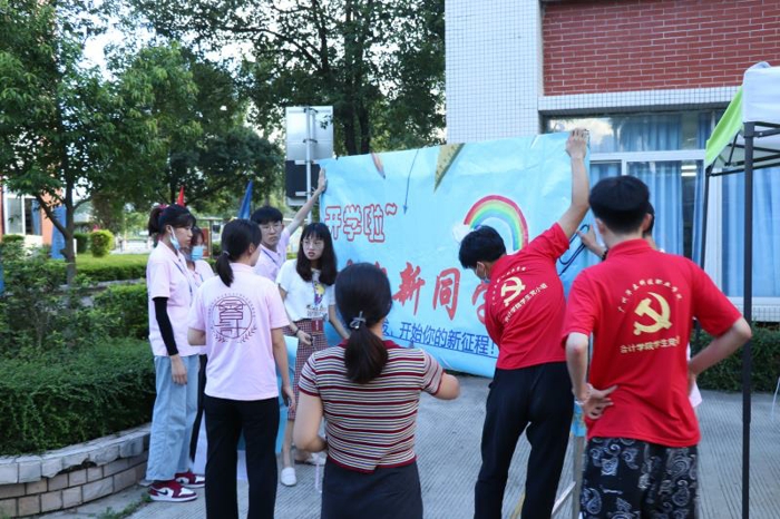 為了確保2020年迎新工作的有序進行,會計學(xué)院迎新志愿者于2020916日早上八點開始在西二教學(xué)樓旁規(guī)定迎新點布置迎新現(xiàn)場。