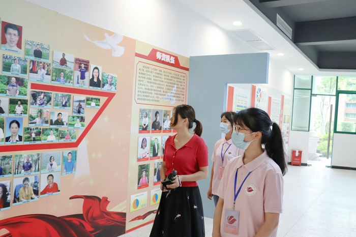 志愿者還帶領(lǐng)家長們一起參觀校史館,里面展示了學(xué)校師資信息、學(xué)院介紹以及學(xué)校歷年發(fā)展情況,使家長們能夠進(jìn)一步了解學(xué)校及學(xué)院信息。