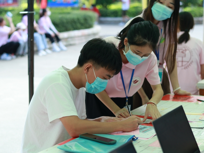 志愿者耐心指導(dǎo)新生填寫信息卡