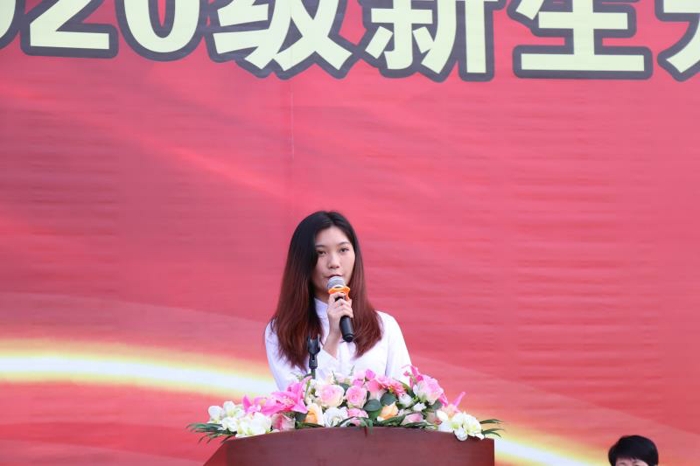 學(xué)生代表陳馨研與新生共勉“年輕允許失敗,嘗試是一種勝利”,她希望新生們能夠在大學(xué)期間,自己學(xué)會照顧自己,學(xué)會理解和關(guān)愛,與同學(xué)、老師積極交流,友好相處,抓住學(xué)校、社會各種實踐機會,憑借自己的智慧與能力,實現(xiàn)自己的夢想。