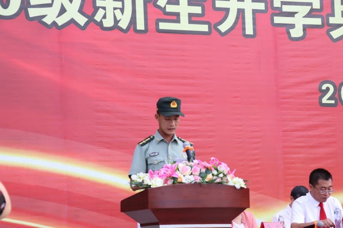 教官代表梁文財同志在發(fā)言中代表全體教官表明決心,他表示要嚴(yán)格遵守軍訓(xùn)的有關(guān)要求和學(xué)校管理規(guī)定,言傳身教,以身作則,積極開展健康向上的集體活動,圓滿開展軍訓(xùn)任務(wù)。希望同學(xué)們服從命令,聽從指揮,頑強拼搏,堅決完成各項訓(xùn)練。