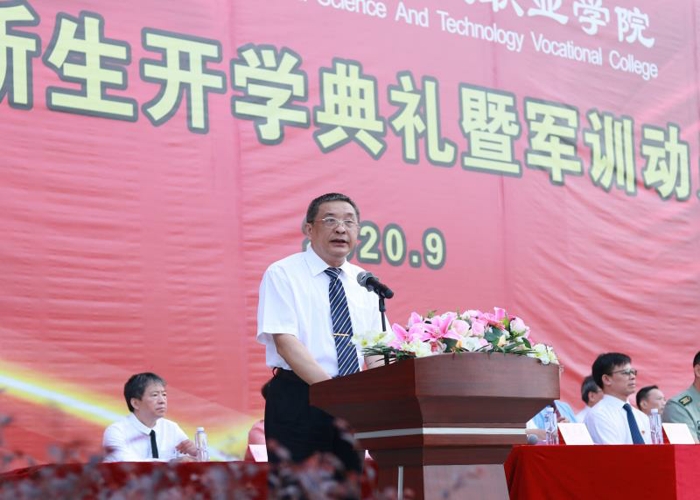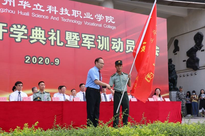 2020年9月23日上午,在綜合樓前廣場召開2020級新生開學(xué)典禮暨軍訓(xùn)動員大會,到場領(lǐng)導(dǎo)及嘉賓有:廣州華立投資有限公司總經(jīng)理葉雅明、廣東工業(yè)大學(xué)華立學(xué)院執(zhí)行校長陳建平、廣東省華立技師學(xué)院校長鄒康、增城區(qū)人武部政委唐華上校、廣州華立科技職業(yè)學(xué)院執(zhí)行校長馬龍海等學(xué)校領(lǐng)導(dǎo),及相關(guān)職能部門、二級學(xué)院負(fù)責(zé)人等。大會由廣州華立科技職業(yè)學(xué)院副校長高堯來主持。大會開始前,升國旗,全體師生起立,奏唱國歌。