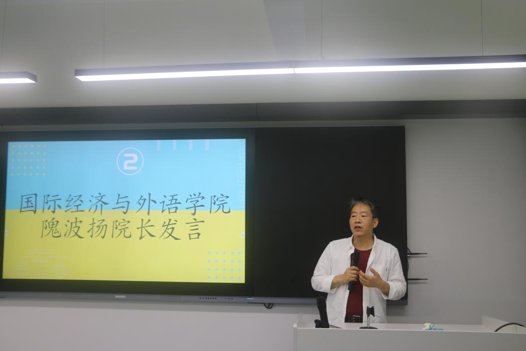 緊接著,是國(guó)貿(mào)學(xué)院副院長(zhǎng)隗波揚(yáng)老師發(fā)言,他講到,大學(xué)生在校期間不但要夯實(shí)自己的專業(yè)知識(shí),還要參加一些技能大賽,不斷的學(xué)習(xí),豐富大學(xué)生活增加閱歷;