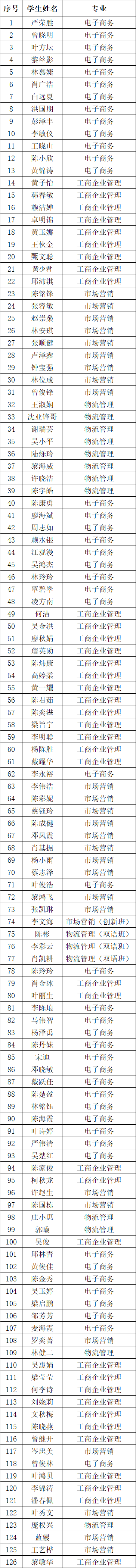 根據(jù)《關(guān)于做好我校2020學(xué)年國家獎助學(xué)金評審的通知》文件的有關(guān)要求,經(jīng)學(xué)生本人申請,各班級民主評議,學(xué)院評定小組審核,我學(xué)院擬推薦嚴榮勝等126位同學(xué)為2020-2021學(xué)年度國家助學(xué)金學(xué)生。按照公開、公平、公正的原則,現(xiàn)將推薦名單予以公示,公示期為2020年11月5日-11月9日,如有異議,請在公示期內(nèi)進行反映。