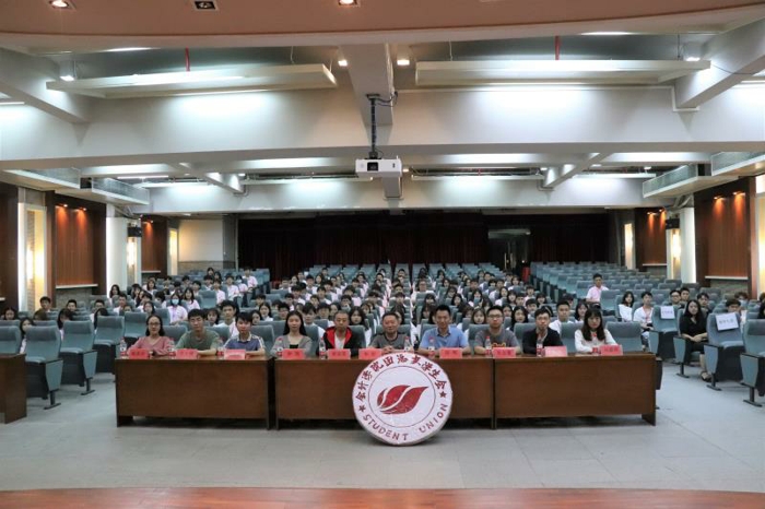 會計學院團總支陳美欣書記宣讀新一屆學生會各部門負責人名單,向新部門負責人表示熱烈祝賀,讓實習生們對團總支學生會有了進一步的了解。
