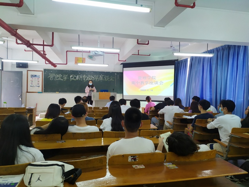 為進(jìn)一步提高學(xué)院教學(xué)質(zhì)量,提升學(xué)院日常教學(xué)管理能力,11月18日下午,管理學(xué)院在西三412教室召開(kāi)了本學(xué)期期中教學(xué)學(xué)生座談會(huì)。參加本次座談會(huì)的領(lǐng)導(dǎo)和老師有溫偉勝院長(zhǎng),劉軍根副院長(zhǎng),教學(xué)主任汪蔚老師,學(xué)院督導(dǎo)梁國(guó)英老師、教務(wù)員以及2019級(jí)、2020級(jí)學(xué)生代表共50余人。本次座談會(huì)由校內(nèi)教學(xué)主任汪蔚老師主持。