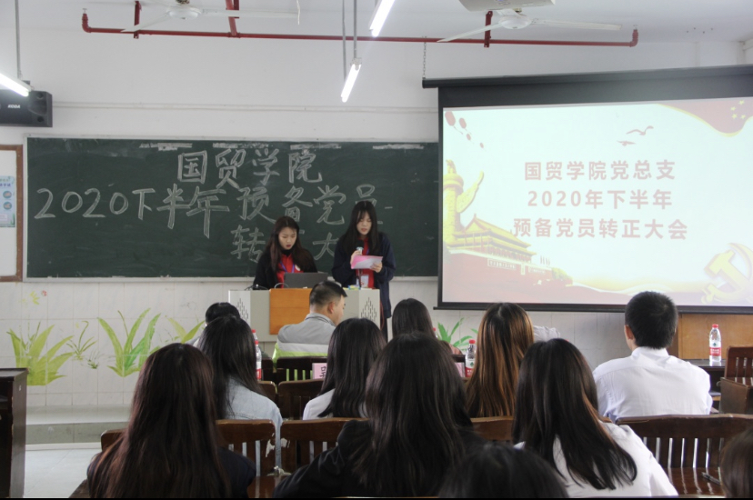 2020年12月8日下午14:00,國貿(mào)學(xué)院黨總支在西一教學(xué)樓401召開了發(fā)展預(yù)備黨員轉(zhuǎn)正大會