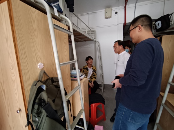 探訪期間,我院領(lǐng)導(dǎo)的關(guān)懷之情溢于言表,詢問同學(xué)們是否住得習(xí)慣,將同學(xué)們的要求和建議一一登記,以便盡快切實(shí)解決學(xué)生的問題,叮囑同學(xué)們注意人身財(cái)產(chǎn)安全,放好貴重物品,并語重心長的對同學(xué)們說要盡快調(diào)整好心態(tài)迎接新學(xué)期,以學(xué)習(xí)為重,積極進(jìn)取,不負(fù)青春韶華。