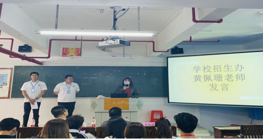 緊接著由招生辦黃佩珊老師進行發(fā)言:她首先表達了對各位參與到寒訪工作里的同學表示感謝,寒訪實踐活動不僅僅是對同學們能力的一種鍛煉及與母校的感情改進,也對學校招生工作進行一個輔助的作用,她表示經(jīng)過報名篩選后最終參與到這個工作里的各位同學已經(jīng)十分優(yōu)秀,并希望同學們也跟著做好后續(xù)的宣傳收尾工作,在向母校學生們宣傳的同時,也要注意緩解好他們擇校時的壓力。