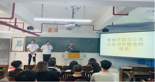 2021年3月16號下午17:30在西三602舉行了寒訪總結大會,首先由主持人吳俊介紹出席本次大會的領導和嘉賓:管理學院辦公室主任劉軍根老師 、管理學院學生管理唐濤副主任老師、管理學院招生辦黃佩珊老師及參與本次寒訪實踐的學生代表。