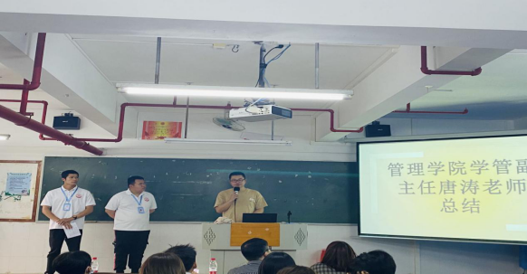 最后由管理學院學管副主任唐濤主任對本次大會進行總結:他再次強調了寒訪實踐活動對于同學們的意義,并對辛勤的同學們進行了鼓勵表揚,雖過程存在不盡人意的地方,大家在困境中雖做法不同卻方向一致,他在表示欣慰之情的同時也希望同學們能在此次寒訪實踐活動中學到東西并總結經(jīng)驗,在接下去的日子里也積極主動的參與各樣實踐活動,不斷完善自己,提高與鍛煉自己的各項能力。