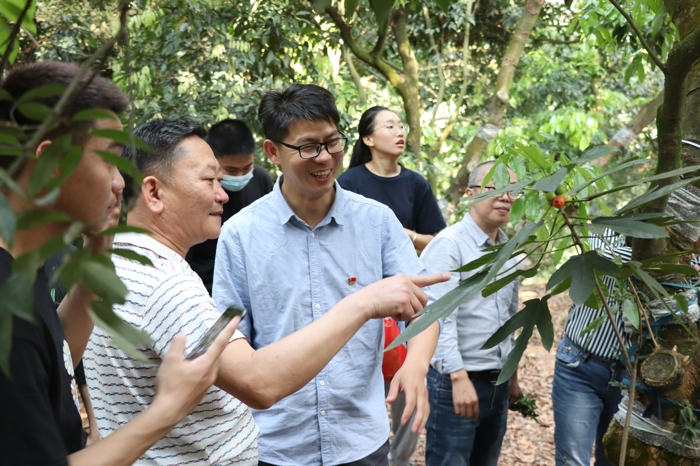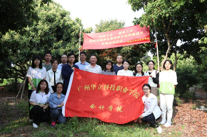 2021年3月18日早上8點(diǎn),一支隊(duì)伍從廣州華立科技職業(yè)學(xué)院出發(fā),由李向林教授帶隊(duì)去往石斛附生荔枝樹種植基地——增城四豐村。隊(duì)伍中有廣州華立科技職業(yè)學(xué)院劉莊校長(zhǎng)、馬龍海執(zhí)行校長(zhǎng)、會(huì)計(jì)學(xué)院李哲院長(zhǎng)、國(guó)際經(jīng)濟(jì)與外語(yǔ)學(xué)院隗波揚(yáng)副院長(zhǎng)、城建學(xué)院鄒筱萍副院長(zhǎng)以及參與此項(xiàng)目的師生代表,另外增江街社工站王凡主任也帶領(lǐng)著社工們參加到隊(duì)伍中。