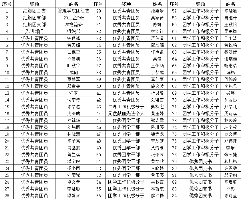 經(jīng)本人申請(qǐng)、學(xué)院核查,教師團(tuán)隊(duì)討論研究,綜合平時(shí)表現(xiàn)與學(xué)業(yè)情況,擬推薦以下名單參與廣州華立科技職業(yè)學(xué)院2020-2021學(xué)年五四表彰,公示如下: