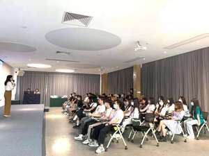 參觀完畢后,在伊的家總部大樓會(huì)議室,同學(xué)們認(rèn)真聽取了公司培訓(xùn)部朱珊珊老師在員工培養(yǎng)和大學(xué)生求職技巧等方面的詳細(xì)介紹。
