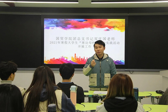 2021年1月13日下午5點30分,我院在西三210智慧教室召開國貿(mào)學院2021年寒假大學生“寒訪母?!鄙鐣嵺`活動動員及培訓會議