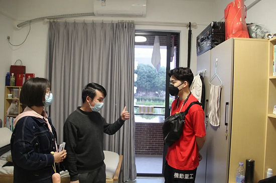 在這春意盎然的開學(xué)季,久別重逢,校園重返生機(jī)。自學(xué)校通知春季開學(xué),我院便對開學(xué)安全進(jìn)行全面準(zhǔn)備,為了解同學(xué)們的到校及安全情況。2021年3月7日下午17點(diǎn)30分,在國貿(mào)學(xué)院隗波揚(yáng)副院長、學(xué)管主任劉偉鑫老師、國貿(mào)學(xué)院團(tuán)總支書記鄭慶國老師、19級輔導(dǎo)員陳曉薇老師以及20級輔導(dǎo)員李明鈺老師的帶領(lǐng)下,學(xué)生會(huì)生活部和紀(jì)檢部協(xié)助我院領(lǐng)導(dǎo)老師開展了新學(xué)期學(xué)生返校宿舍慰問活動(dòng),進(jìn)一步了解同學(xué)們的學(xué)習(xí)和生活。