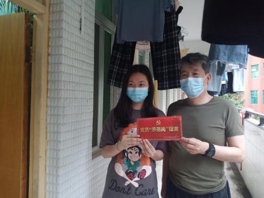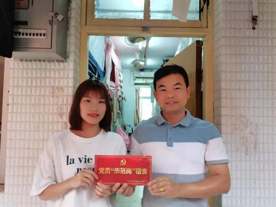 活動(dòng)過程中,由國貿(mào)學(xué)院黨總支書記隗波揚(yáng)老師、國貿(mào)學(xué)院第二黨支部書記劉偉鑫老師、國貿(mào)學(xué)院第二黨支部紀(jì)檢委員陳曉薇老師親自為學(xué)生黨員宿舍掛上“黨員示范宿舍”稱號,親切慰問學(xué)生黨員宿舍生活情況以及宿舍安全問題,囑咐學(xué)生黨員們一定要起好帶頭作用,以身作則。并與學(xué)生黨員合影留念。