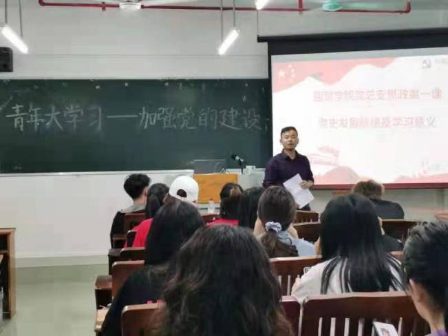 2021年4月19日周一晚上,國貿(mào)學(xué)院黨總支黨建小組開展了思政第一課活動(dòng)?;顒?dòng)內(nèi)容主要是為同學(xué)們講解黨的歷史,旨在提高學(xué)生對黨史的熟悉,加深對黨史的理解。