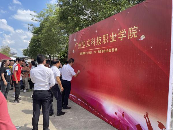 2021年5月16日廣州華立科技職業(yè)學院管理學院于??凭C合樓廣場開展18、19級畢業(yè)紀念拍照活動,廣場上同學們熱情高漲,擺出各種造型動作,無異于是學校里最靚麗的風景線。此次活動在領導們的簽名與祝福下拉開了序幕。