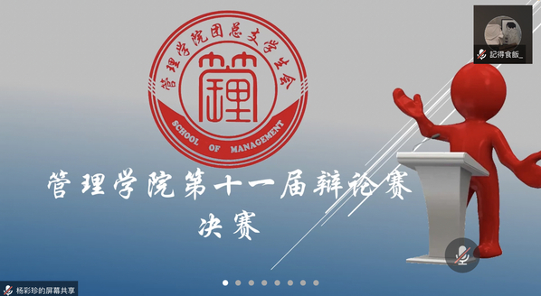 活動(dòng)開(kāi)始,由主持人楊彩珍介紹出席本次活動(dòng)的領(lǐng)導(dǎo)及嘉賓,他們分別是管理學(xué)院團(tuán)總支書(shū)記陳媛老師、管理學(xué)院輔導(dǎo)員戴雙雅老師、管理學(xué)院輔導(dǎo)員張南南老師、管理學(xué)院實(shí)習(xí)輔導(dǎo)員趙昊宏老師、辯論協(xié)會(huì)的評(píng)委們、參賽學(xué)生及線(xiàn)上的觀(guān)眾。