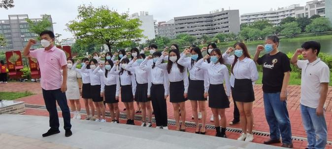 為了牢固樹立黨員的黨性意識(shí),培養(yǎng)優(yōu)秀黨員,為黨組織輸入新鮮血液。2021年6月24日,國貿(mào)學(xué)院黨總支召開新黨員佩戴黨徽和入黨宣誓儀式。國貿(mào)學(xué)院黨總支書記隗波揚(yáng)老師、黨總支副書記劉偉鑫老師、黨總支紀(jì)檢委員陳曉薇老師以及新發(fā)展黨員參加了此次儀式。