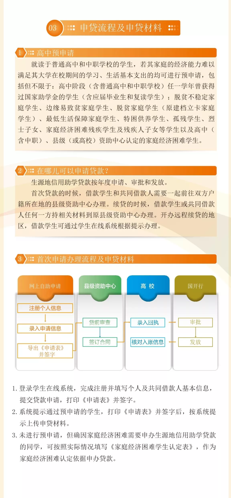 那么生源地助學(xué)貸款的申請流程是什么呢?下文為最新國家開發(fā)銀行助學(xué)貸款申請指南。