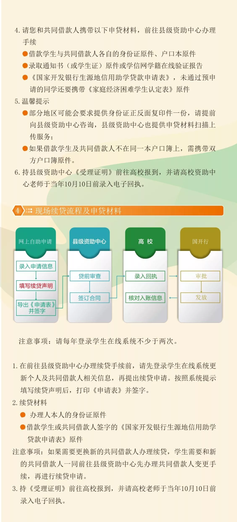 (3)逾期還款:1月至10月的1日至20日,11月1日至12月20日,可進(jìn)行逾期還款。學(xué)生自畢業(yè)當(dāng)年起開始償還利息,如當(dāng)年12月20日未能及時還款,將被視作貸款逾期。逾期利息不計(jì)復(fù)利,但將對逾期本金計(jì)收罰息,罰息利率為當(dāng)期利率的130%。逾期還款時應(yīng)償還逾期本息和相應(yīng)罰息。具體金額可在每月1日至20日登錄學(xué)生在線服務(wù)系統(tǒng)查詢。