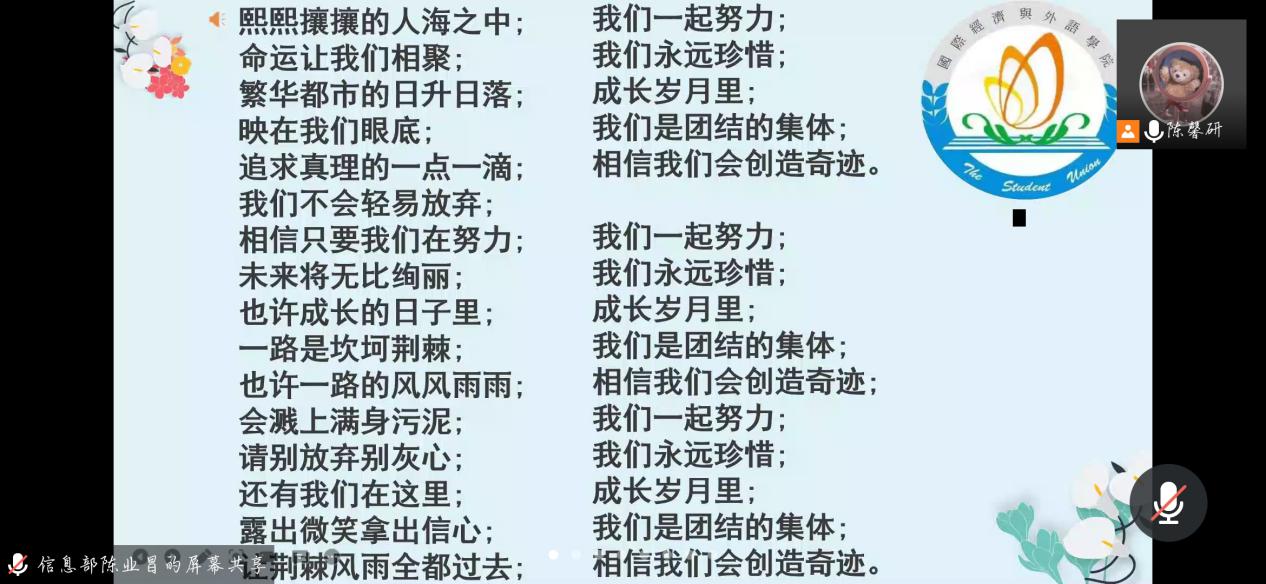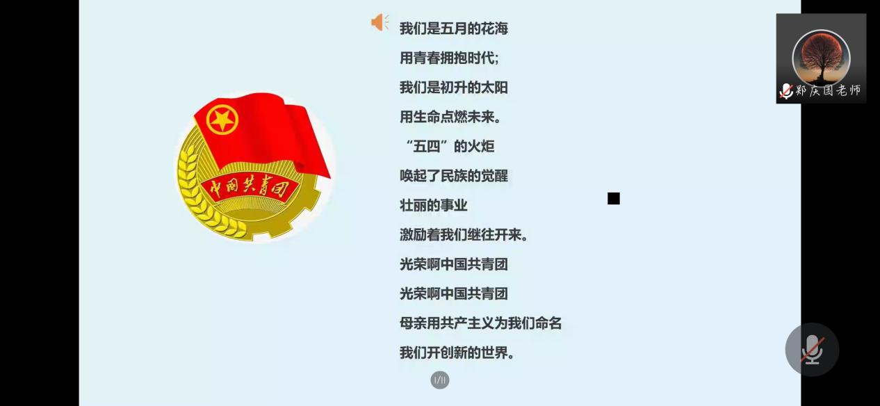 第二環(huán)節(jié)全體起立,奏唱團(tuán)歌。