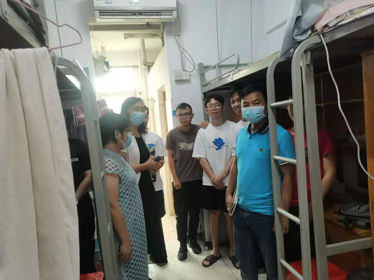 財(cái)經(jīng)學(xué)院于2021年8月30日開展了深入學(xué)生宿舍走訪慰問活動(dòng)。此次深入走訪慰問的領(lǐng)導(dǎo)有財(cái)經(jīng)學(xué)院劉惠玲院長,財(cái)經(jīng)學(xué)院楊玲副院長,財(cái)經(jīng)學(xué)院學(xué)管主任劉偉鑫老師,財(cái)經(jīng)學(xué)院團(tuán)總支書記鄭慶國老師,財(cái)經(jīng)學(xué)院輔導(dǎo)員陳湛通老師,財(cái)經(jīng)學(xué)院實(shí)習(xí)輔導(dǎo)員練曉慧老師,以及財(cái)經(jīng)學(xué)院學(xué)生會(huì)部分學(xué)生干部一同下宿舍進(jìn)行走訪慰問。