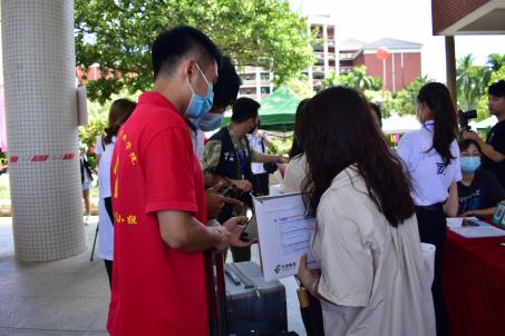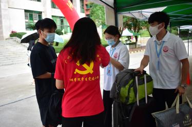 迎新工作如火如荼、眾多的志愿者微笑相迎:協(xié)助注冊(cè)報(bào)道、搬運(yùn)行李等,忙碌的身影穿梭在校園的各個(gè)角落。團(tuán)委學(xué)生會(huì)和黨建小組的師兄師姐們不厭其煩地回答新生、家長(zhǎng)提出的問題。不少團(tuán)委學(xué)生會(huì)和黨建小組的師兄師姐主動(dòng)幫著拎行李,一路談笑風(fēng)生。新生細(xì)聲地叫著“師兄師姐”,老生們也開心地介紹學(xué)校的風(fēng)采。
