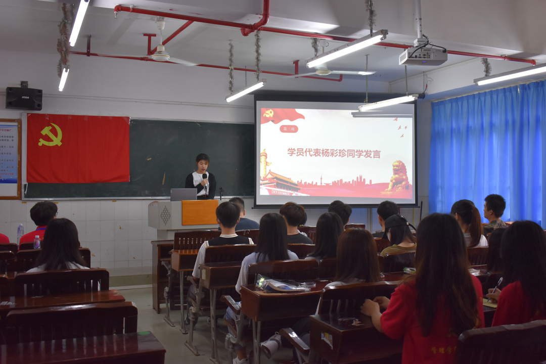 由學(xué)生代表?xiàng)畈收渫景l(fā)言。楊彩珍同學(xué)表示:感謝學(xué)校領(lǐng)導(dǎo)和黨委組織給我們提供的這次機(jī)會(huì),使我們能從更好的從思想上,作風(fēng)上,行動(dòng)上早日加入共產(chǎn)黨。在黨校學(xué)習(xí)期間,我們會(huì)認(rèn)真做到以下幾點(diǎn):第一,堅(jiān)決做到按時(shí)上課,認(rèn)真聽(tīng)講,認(rèn)真做好筆記,第二,嚴(yán)格要求自己,遵守紀(jì)律。尊敬師長(zhǎng),樹(shù)立黨校學(xué)員的良好形象。第三,主動(dòng)完善自己,積極向黨組織靠攏,把自己鍛煉成符合黨和人民的合格的社會(huì)建設(shè)者的接班人。