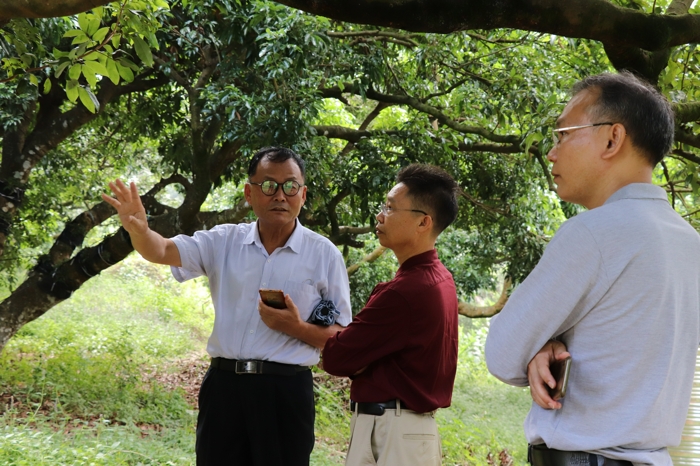 座談會(huì)后,在我院李向林教授的陪同下,指導(dǎo)組一行參觀了“荔枝樹(shù)上種仙草”項(xiàng)目的兩個(gè)種植實(shí)驗(yàn)點(diǎn)——四豐村和太子坑森林公園。在太子坑森林公園實(shí)驗(yàn)點(diǎn)里,李向林教授把荔枝林物盡其用,樹(shù)上種石斛,樹(shù)下種涼粉草,為當(dāng)?shù)氐奶厣a(chǎn)業(yè)振興給予了技術(shù)支持。參觀過(guò)程中,李向林教授向指導(dǎo)組同志介紹了該項(xiàng)目目前開(kāi)展情況以及下一步的開(kāi)展方向,指導(dǎo)組同志紛紛點(diǎn)贊,高度評(píng)價(jià)了該項(xiàng)目將帶來(lái)的效益,包括農(nóng)業(yè)發(fā)展、環(huán)境保護(hù)以及產(chǎn)業(yè)經(jīng)濟(jì)發(fā)展等等方面的效益。