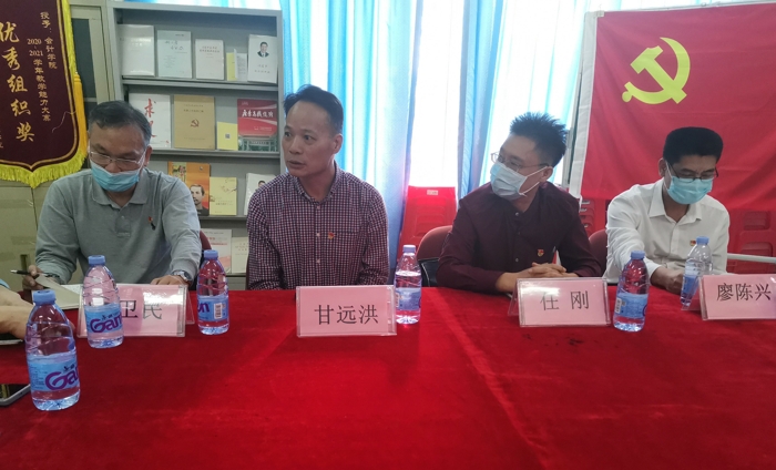 首先由財(cái)經(jīng)學(xué)院黨總支書記楊玲同志匯報(bào)財(cái)經(jīng)學(xué)院黨總支黨史學(xué)習(xí)教育活動(dòng)開(kāi)展情況。楊玲書記首先介紹了教師支部的人員構(gòu)成和取得的成績(jī),并匯報(bào)了黨史學(xué)習(xí)教育專題組織生活會(huì)中檢視出來(lái)存在的問(wèn)題,以及針對(duì)存在的問(wèn)題采取的一系列整改措施。楊書記講到,財(cái)經(jīng)學(xué)院黨總支在做好“三會(huì)一課”的基礎(chǔ)上,開(kāi)展了一系列黨史學(xué)習(xí)活動(dòng)。特別是“我為群眾辦實(shí)事”方面,重點(diǎn)介紹了我院的“壹元助夢(mèng)”和“荔枝樹(shù)上種仙草”兩個(gè)項(xiàng)目,利用學(xué)校師生資源和農(nóng)業(yè)技術(shù)為當(dāng)?shù)剜l(xiāng)村振興服務(wù)。