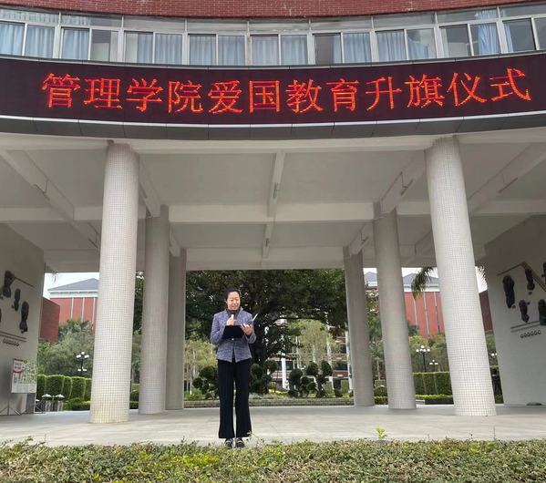 為貫徹愛國精神讓愛國主義教育更加深入人心,2021年12月13日早上7點30分,廣州華立科技職業(yè)學院第十六周升旗儀式在西區(qū)綜合樓廣場舉行,主題為“愛國教育”。本次升旗儀式由管理學院承辦,并邀請了管理學院程玉賢院長在國旗下發(fā)言,管理學院全體師生參加了此次升旗儀式。
