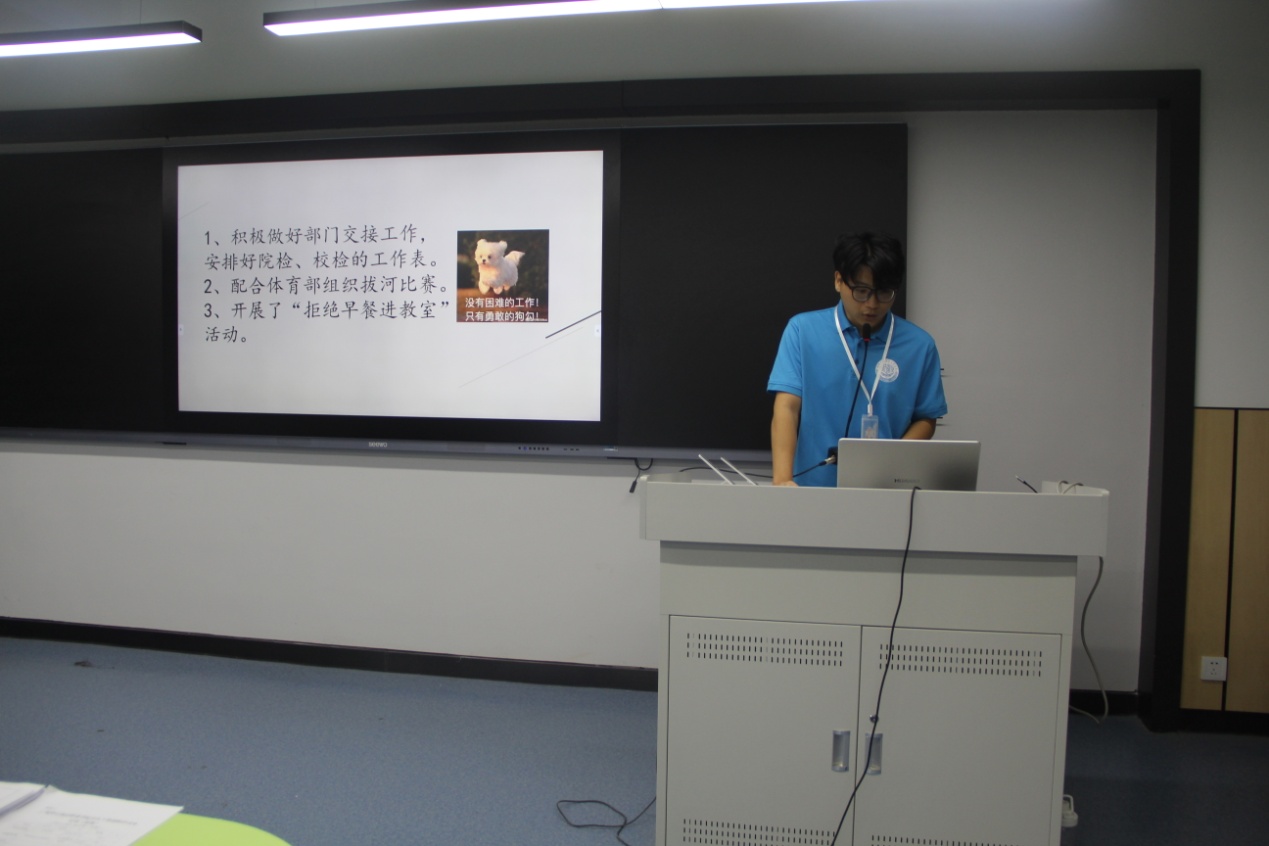述職會(huì)上,團(tuán)總支學(xué)生會(huì)干部代表們從本學(xué)期的工作成效、工作內(nèi)容、紀(jì)律作風(fēng)與未來(lái)展望等方面進(jìn)行了述職匯報(bào),總結(jié)了個(gè)人履職情況,查找自身的不足之處,明確未來(lái)努力方向。同時(shí)也匯報(bào)了下一學(xué)期的工作計(jì)劃,分析了存在的問(wèn)題和不足,剖析工作的重點(diǎn),分享了工作經(jīng)驗(yàn),并就下一步工作做出規(guī)劃設(shè)計(jì),對(duì)團(tuán)學(xué)工作的未來(lái)發(fā)展和建設(shè)提出自己的思考。