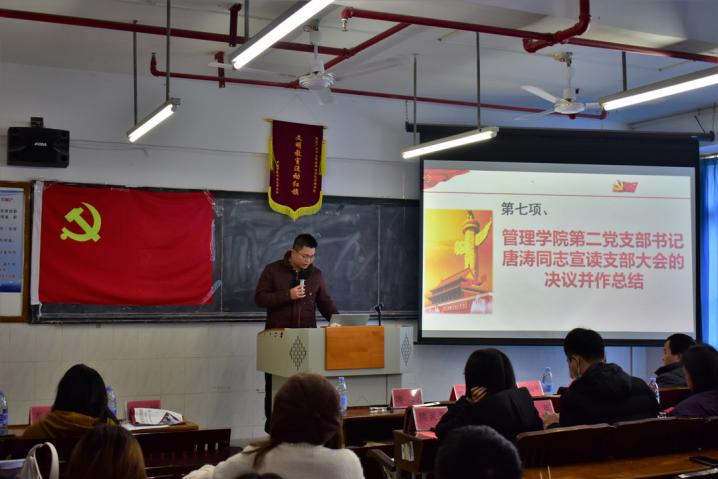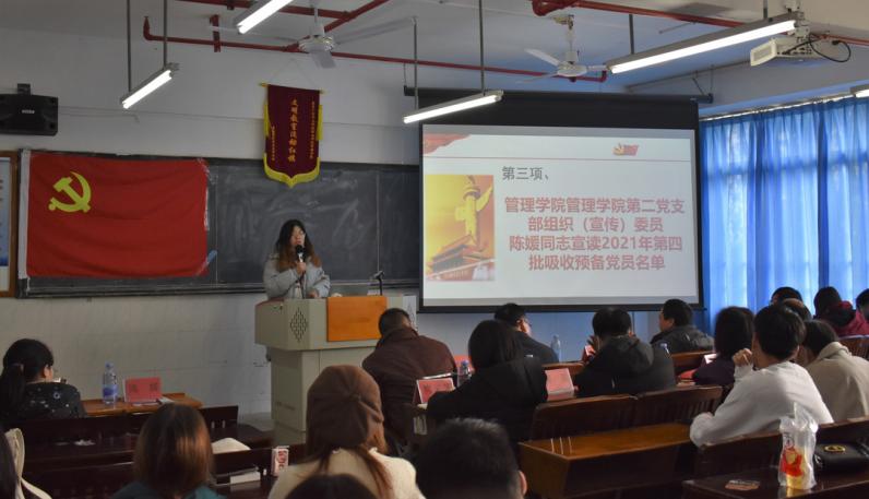 《管理學(xué)院第二黨支部組織(宣傳)委員陳媛同志宣讀2021年第四批吸收預(yù)備黨員名單》