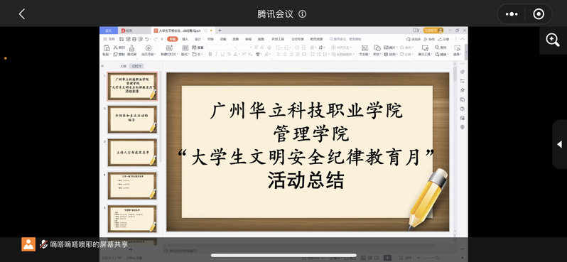 2022年4月1日晚上7:10,管理學(xué)院于線上開展文明安全紀(jì)律教育月總結(jié)大會。