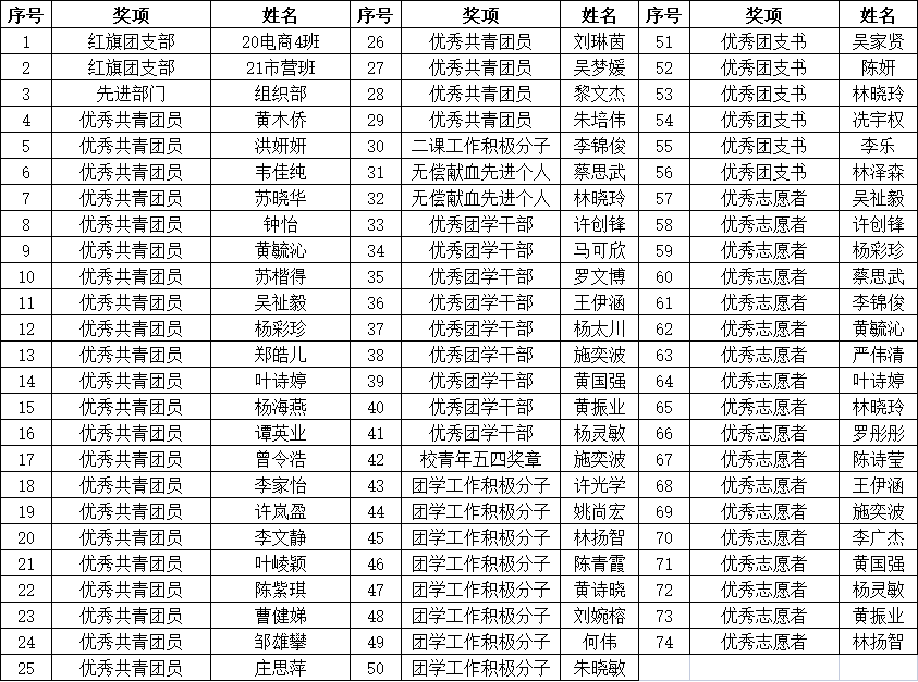 經本人申請、學院核查,教師團隊討論研究,綜合平時表現與學業(yè)情況,擬推薦以下名單參與廣州華立科技職業(yè)學院2021-2022學年五四表彰,公示如下,公示期為2022年04月16日-04月20日,有異議請在公示期間前向管理學院提出,聯系人:陳媛,電話:020-82911837。