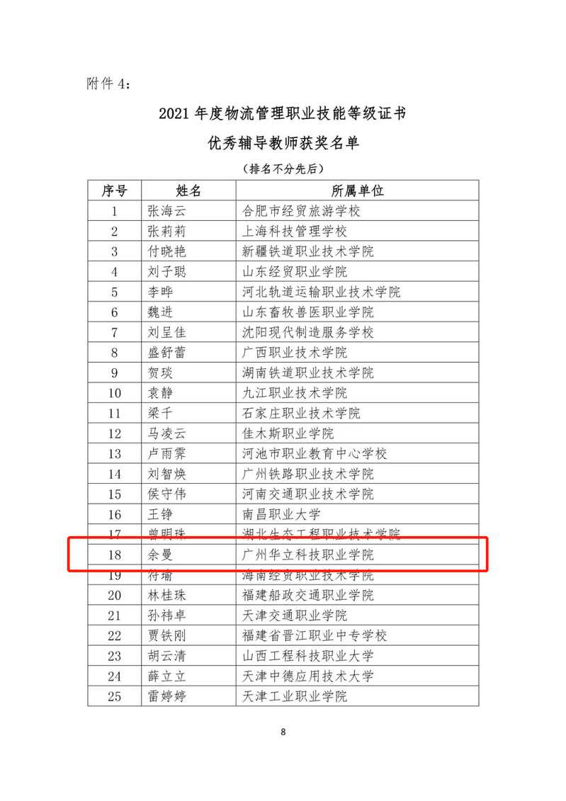 2022年6月16日,北京中物聯(lián)物流采購(gòu)培訓(xùn)中心公布了2021年度物流管理職業(yè)技能等級(jí)證書先進(jìn)單位及個(gè)人名單,我校榮獲優(yōu)秀試點(diǎn)院校稱號(hào),余曼老師被評(píng)為優(yōu)秀輔導(dǎo)教師,陳瀟峰老師被評(píng)為優(yōu)秀考務(wù)管理員。