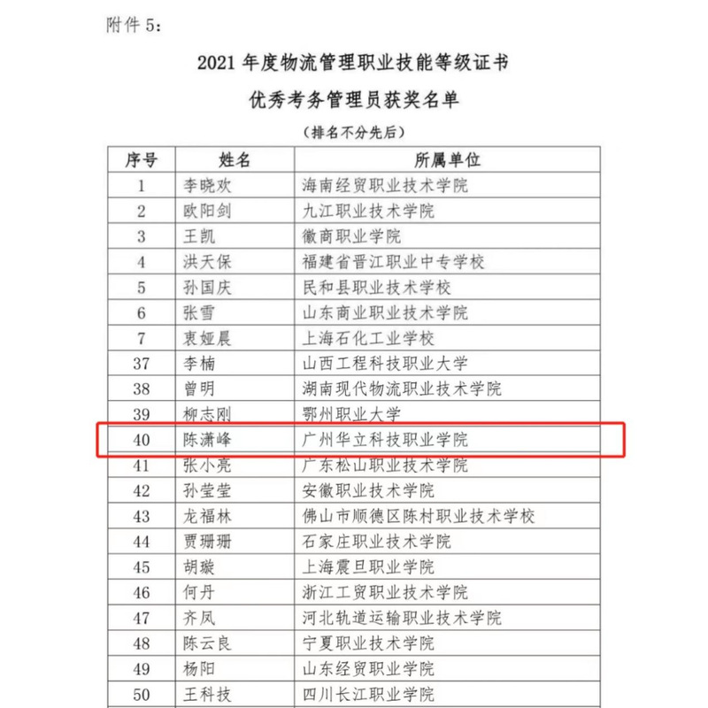 2022年6月16日,北京中物聯(lián)物流采購(gòu)培訓(xùn)中心公布了2021年度物流管理職業(yè)技能等級(jí)證書(shū)先進(jìn)單位及個(gè)人名單,我校榮獲優(yōu)秀試點(diǎn)院校稱號(hào),余曼老師被評(píng)為優(yōu)秀輔導(dǎo)教師,陳瀟峰老師被評(píng)為優(yōu)秀考務(wù)管理員。