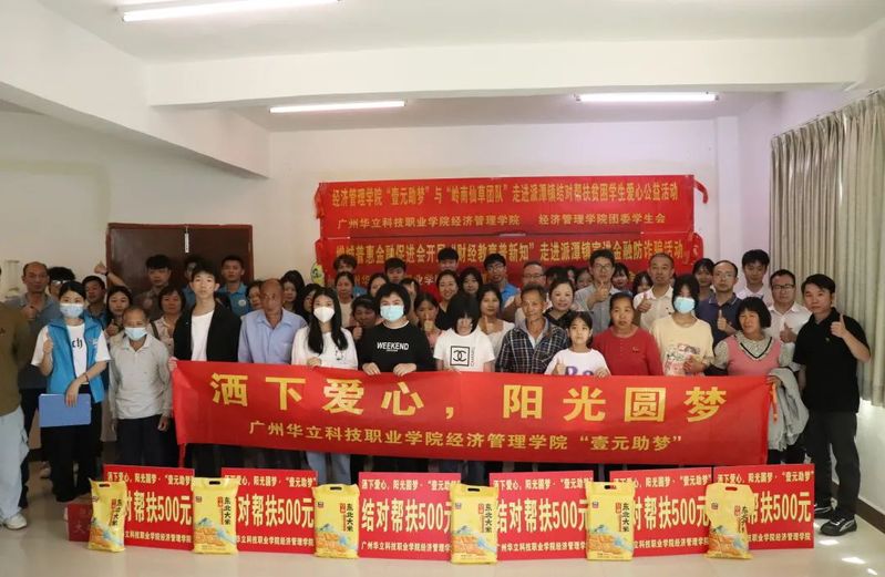 2023年4月16日,燦爛的陽光穿過樹枝間的空隙,透過早霧,一縷縷地灑滿了整個(gè)校園。經(jīng)濟(jì)管理學(xué)院師生代表一行在黨總支書記朱少先和院長程玉賢的帶領(lǐng)下,前往增城區(qū)派潭鎮(zhèn)社工服務(wù)站開展“壹元助夢”幫扶活動(dòng)。本次活動(dòng)主題為——灑下愛心,陽光圓夢。