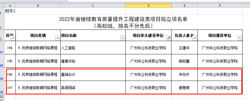 根據《廣東省教育廳關于開展2022年省繼續(xù)教育質量提升工程建設類項目申報工作的通知》等文件要求,經地級以上市教育局和高校推薦、資格審查、專家評分等環(huán)節(jié),共評出立項項目773個。其中,地市組共147個、高校組共626個。我院兩門課程《基礎會計》與《英語閱讀》喜獲立項。