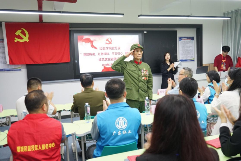 2024年3月27日下午,經(jīng)濟(jì)管理學(xué)院黨總支在西三教學(xué)樓208課室舉行“黨建鑄魂領(lǐng)航向 薪火相傳永向前”主題黨日活動(dòng)。參加本次活動(dòng)的有“老兵永遠(yuǎn)跟黨走”紅色宣講團(tuán)代表、戰(zhàn)斗英雄顧海城同志和黃香源同志;廣州市增城區(qū)增江街道社區(qū)工站負(fù)責(zé)同志和黨員代表;經(jīng)濟(jì)管理學(xué)院黨總支書(shū)記朱少先同志、支委委員副院長(zhǎng)朱向平同志和專職副書(shū)記兼學(xué)生黨支部書(shū)記謝曉慧同志,以及師生黨員和經(jīng)管學(xué)院黨建小組全體成員。會(huì)議由謝曉慧同志主持。