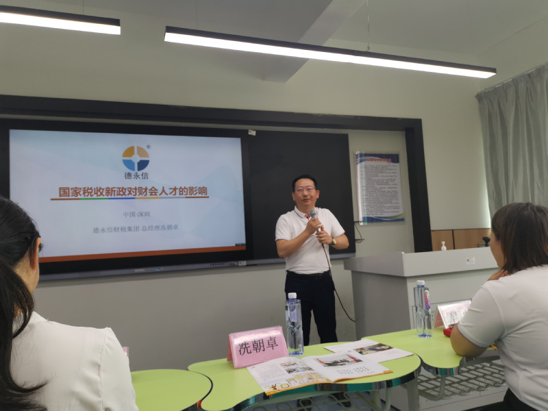 為領(lǐng)悟國(guó)家稅收新政策,了解財(cái)會(huì)行業(yè)發(fā)展新趨勢(shì),促進(jìn)專業(yè)建設(shè)進(jìn)步,有效指導(dǎo)高職學(xué)生職業(yè)素養(yǎng)與崗位技能教育,4月2日上午,經(jīng)濟(jì)管理學(xué)院2024年企業(yè)精英進(jìn)校園,主題為《國(guó)家稅收的新政對(duì)財(cái)會(huì)職業(yè)的影響》知識(shí)講座,在西3-209舉行,主講人為校企友好合作單位---深圳市德永信財(cái)稅集團(tuán)有限公司總經(jīng)理冼朝卓先生主講,經(jīng)濟(jì)管理學(xué)院負(fù)責(zé)人梁慧貞院長(zhǎng)、副院長(zhǎng)朱向平、教師代表、大數(shù)據(jù)與會(huì)計(jì)及大數(shù)據(jù)與財(cái)務(wù)管理專業(yè)2022級(jí)學(xué)生代表,一起出席了本場(chǎng)講座。