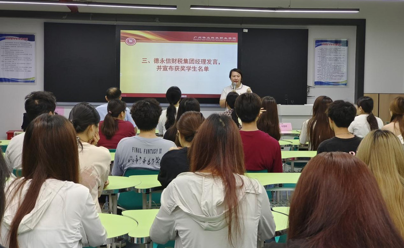 圖2 德永信公司鄧慧婷賬務(wù)經(jīng)理發(fā)言并公布獲得企業(yè)獎(jiǎng)學(xué)金名單